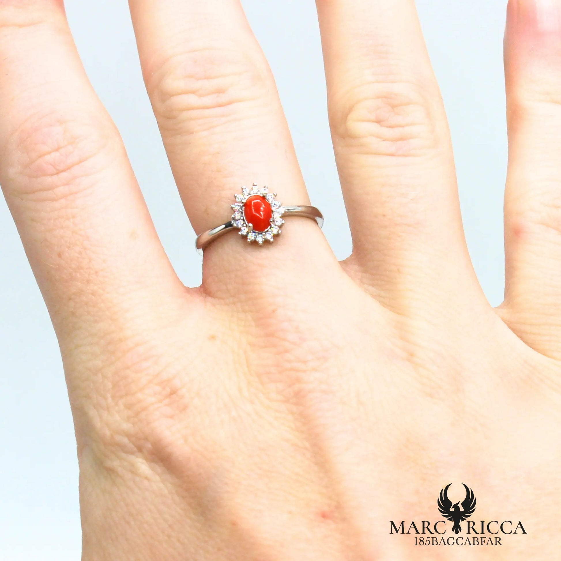 La monture en argent 925 offre une finition éclatante et durable, parfaitement harmonisée avec l’intensité du corail et l’éclat des zirconium.