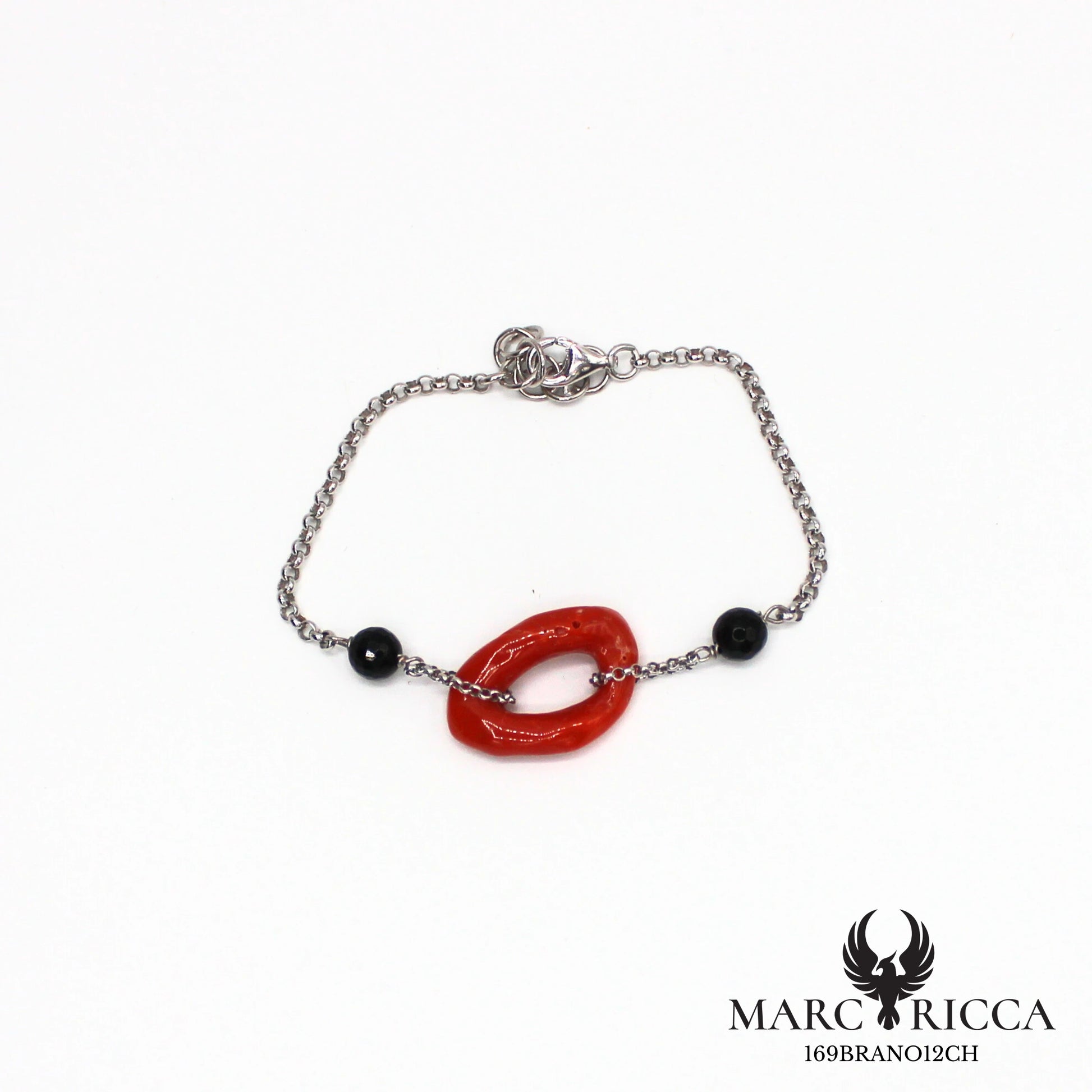 Élégant et raffiné, ce bracelet chaîne en argent 925 met en valeur un anneau en corail rouge au centre, symbole de force et de protection, accompagné de deux perles de cristal noir pour une touche chic et moderne. Un bijou délicat qui allie harmonieusement tradition méditerranéenne et élégance contemporaine.