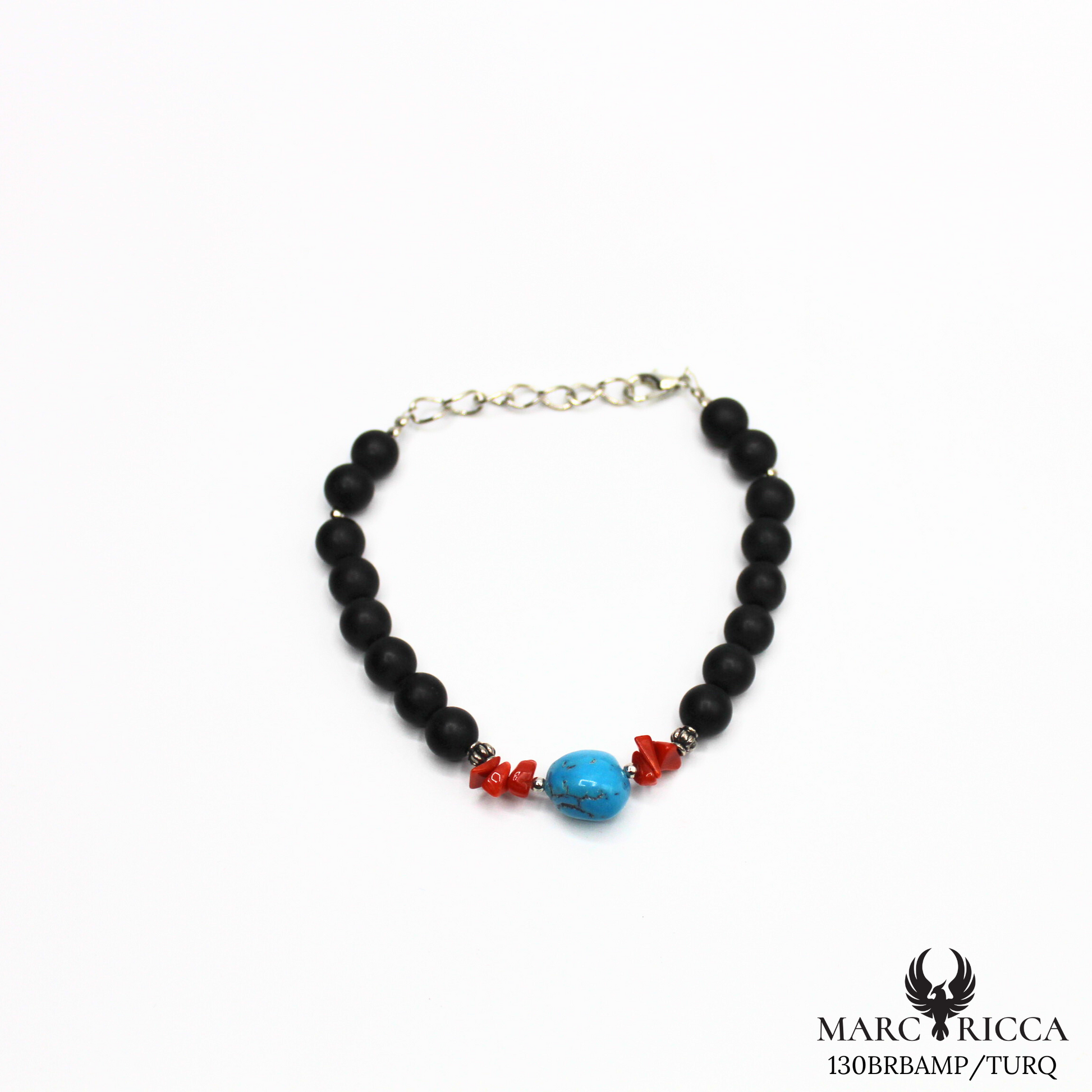 Bracelet avec turquoise et corail en acier. Raffiné et polyvalent, il s'adapte à tous les styles, du décontracté au sophistiqué. Parfait comme cadeau significatif, ce bijou allie modernité et savoir-faire artisanal.