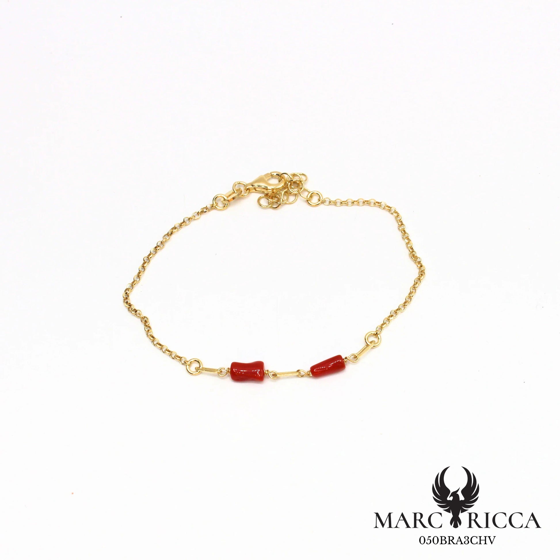Bracelet chaîne en vermeil avec tubes de corail