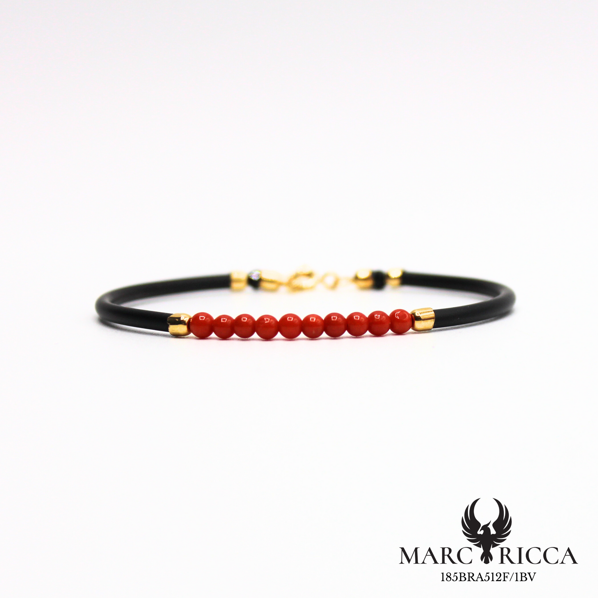 Bracelet jonc caoutchouc et perles de corail en vermeil
