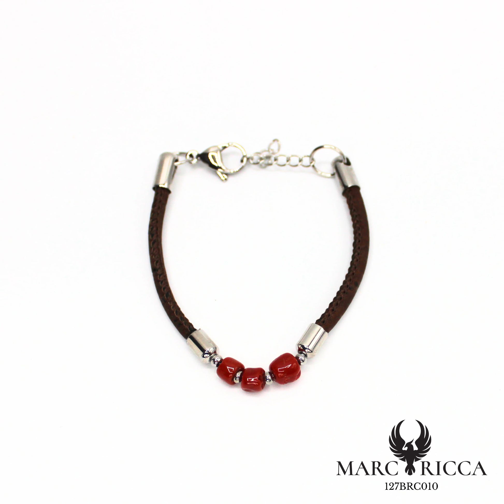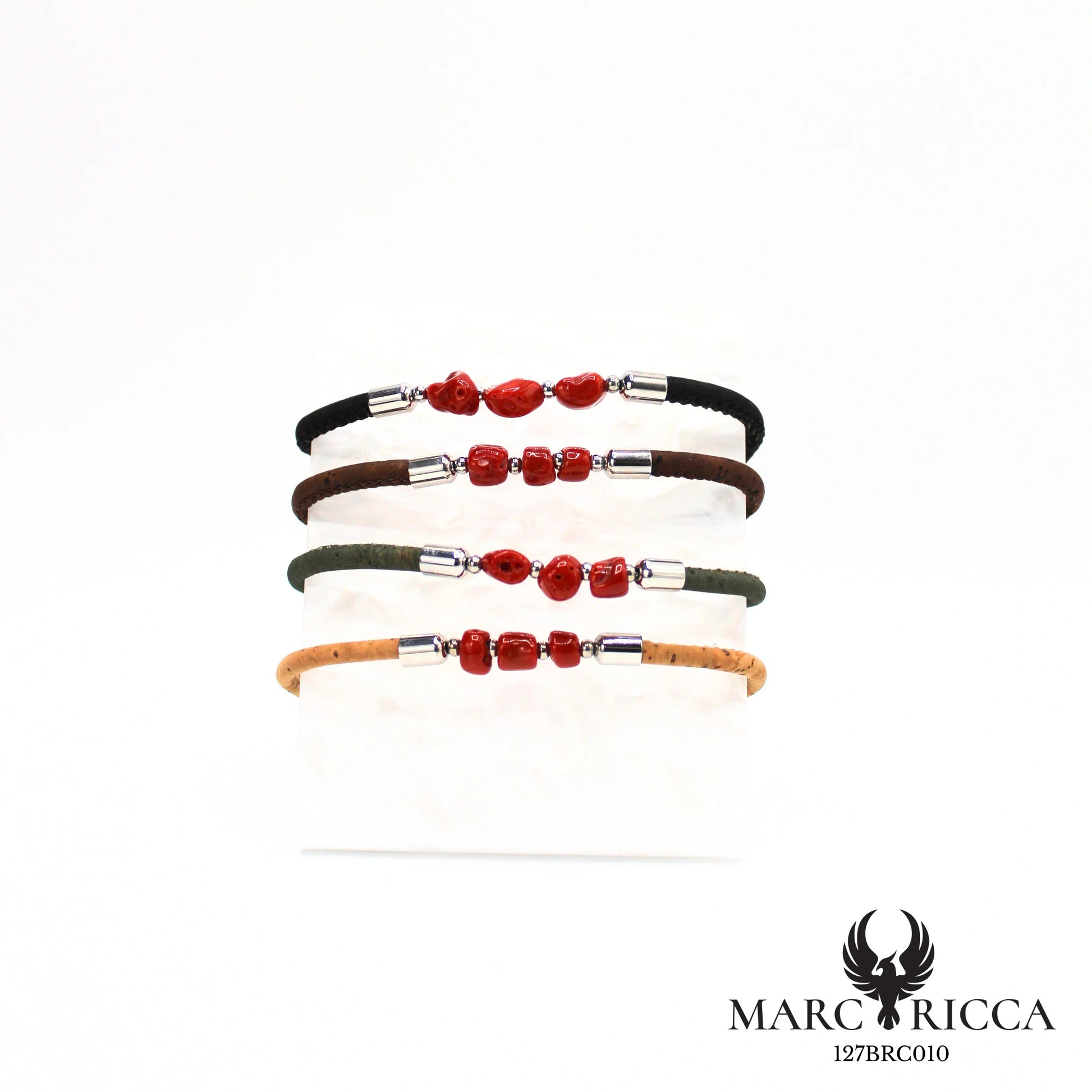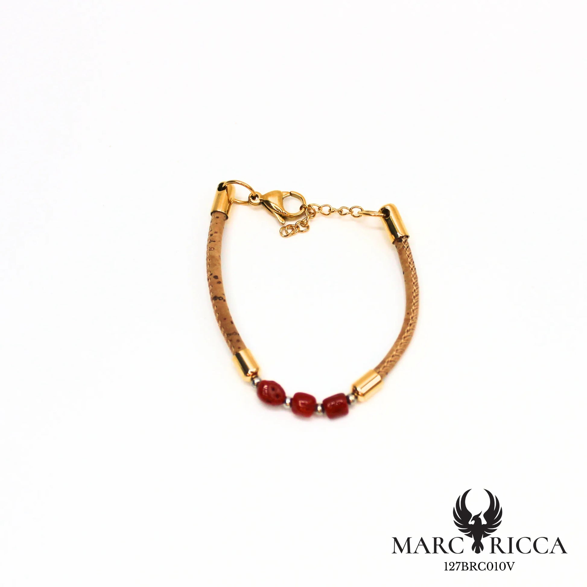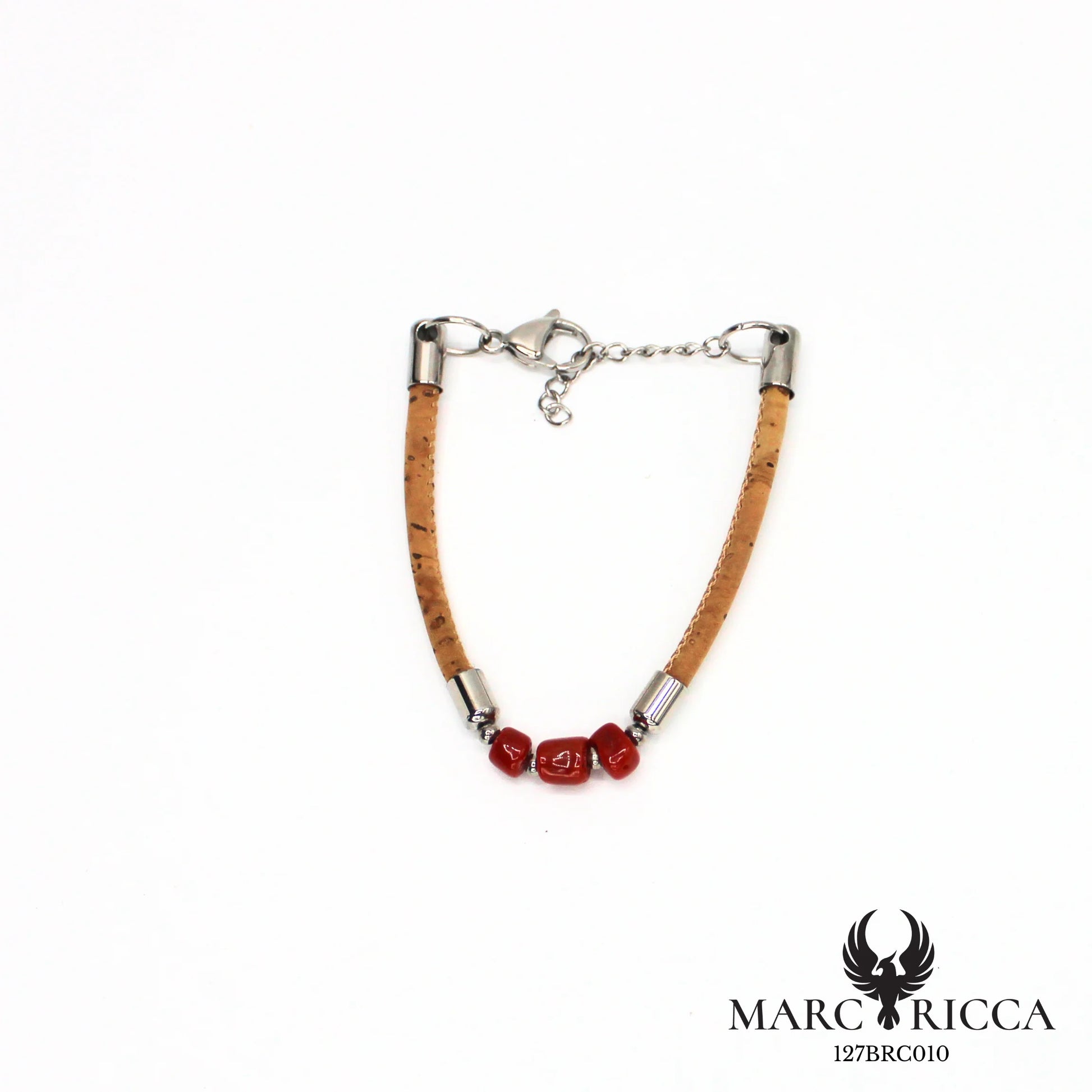 Ce bracelet artisanal en liège naturel se distingue par ses trois morceaux de corail rouge méditerranéen, mis en valeur par un design sobre et élégant. Léger et confortable, il est agrémenté d’un fermoir en acier inoxydable robuste qui garantit solidité et praticité.