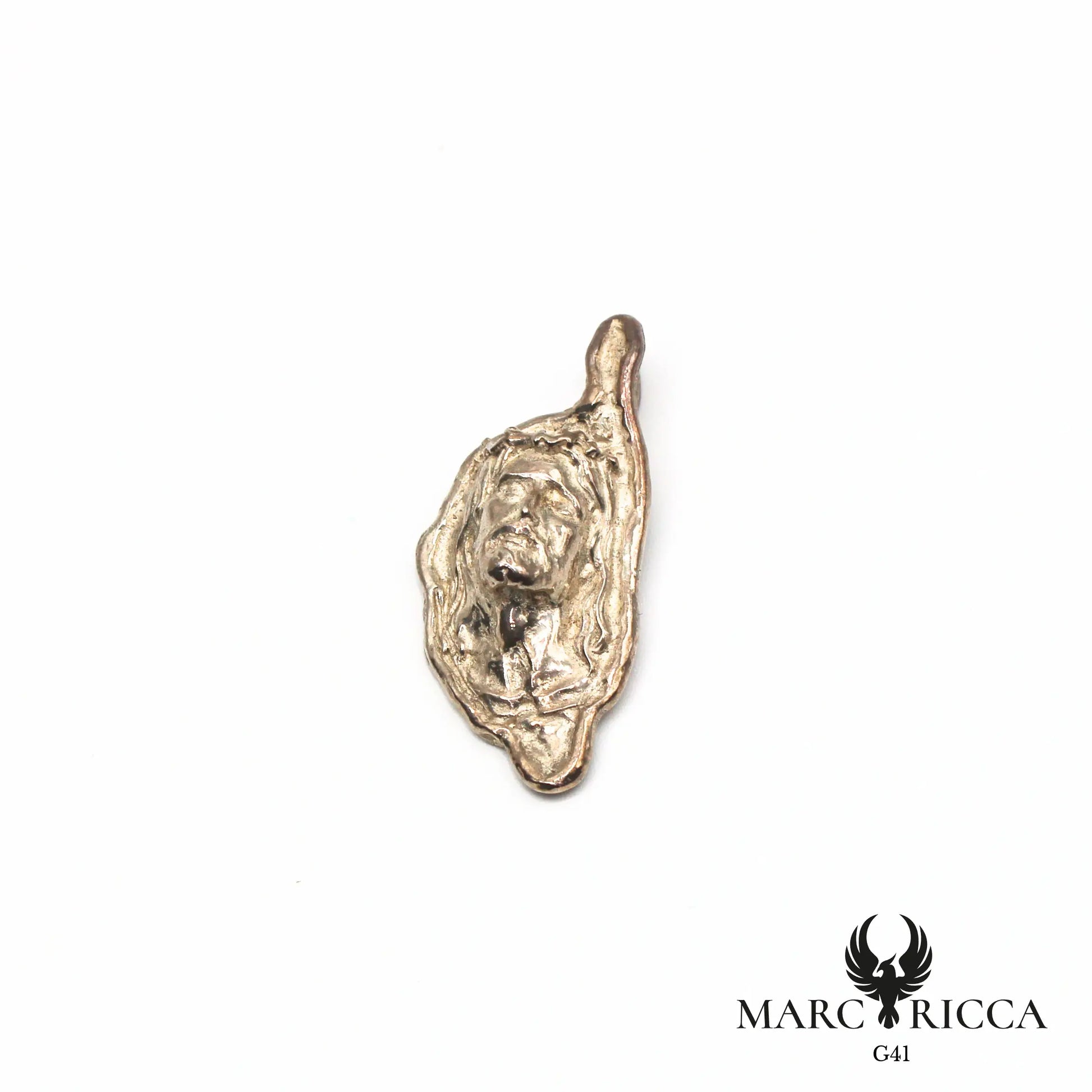 La tête du Christ, minutieusement sculptée comme moulée dans le métal, apporte une dimension sacrée et protectrice, tandis que les contours délicats de la Corse rappellent la profondeur culturelle et spirituelle de l’île. Sa finition polie met en valeur chaque détail, pour un éclat subtil et intemporel.